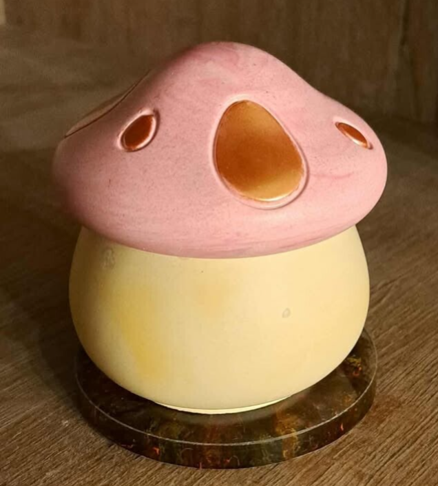 Deze schattige paddestoel gemaakt uit jesmonite kan je kopen met een kaarsje in alsook leeg.Met kaars; +5€